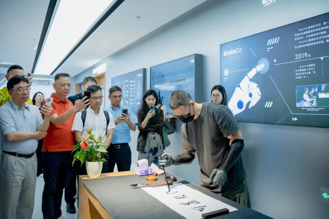会前,与会嘉宾前往强脑科技公司参观,深入了解了强脑科技在各领域产品的最新研发技术,特别是智能仿生手的创新成果,残疾人可直接穿戴使用,无需开颅,即能控制每根手指的精细运动。嘉宾们对强脑科技在人工智能方面取得的成就给予了高度评价。